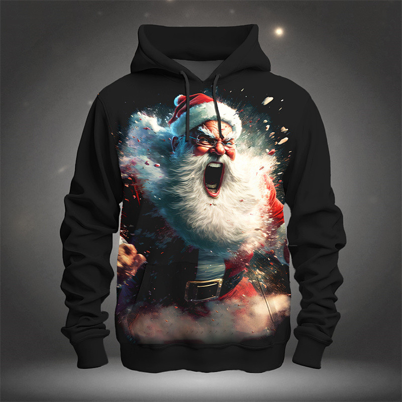 Christmas Men's Santa Claus 3D Hoodies Graphic Santa Claus Fashion 3D Print Sports Outdoor Holiday Hoodies Black Dark Green Long Sleeve Hooded Print Front Pocket Spring Fall Designer shirt