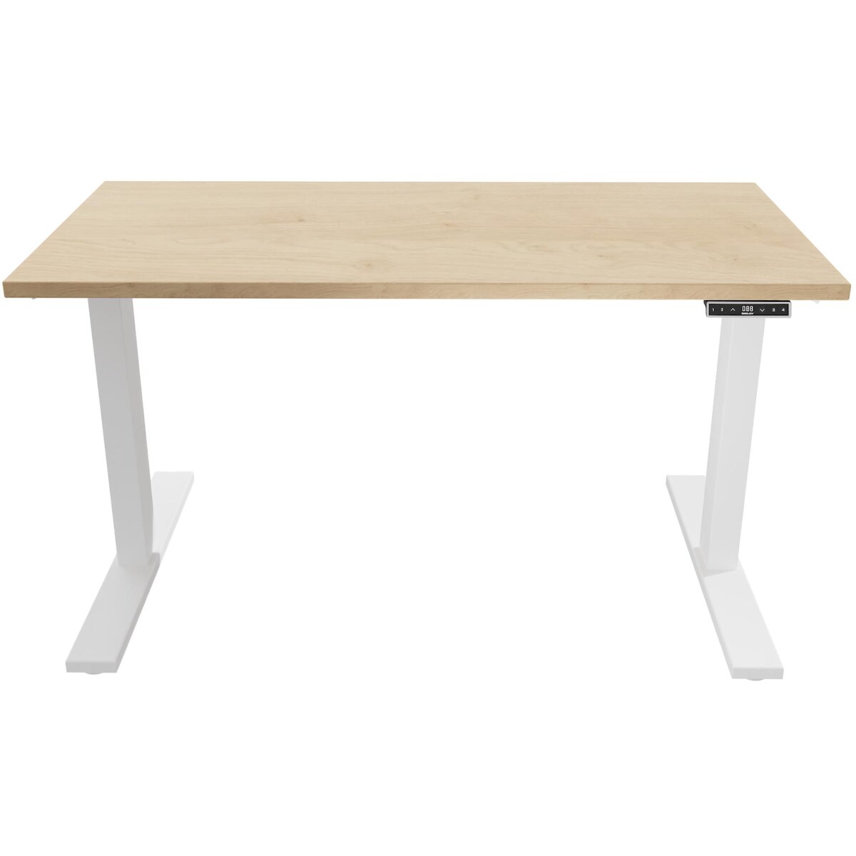 Bisley E-WonderTech elektrisch höhenverstellbarer Schreibtisch 140x80 cm in Weiß/Ahorn - Elektrischer Tisch höhenverstellbar mit Memory-Funktion