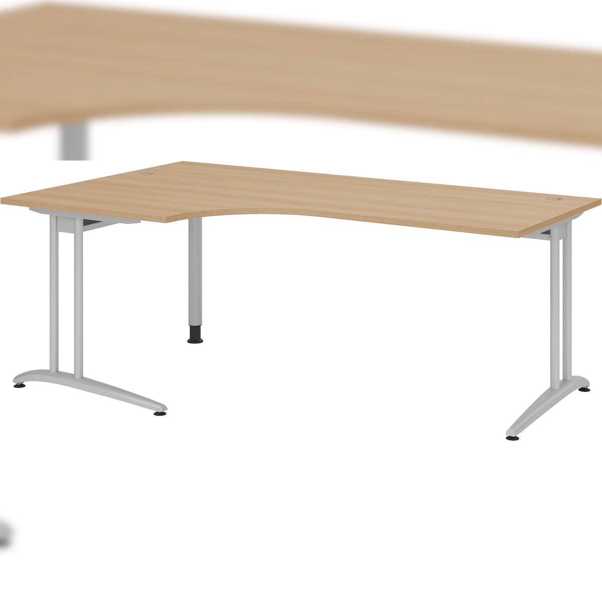 bümö Eckschreibtisch groß, B-Serie 200x120 cm, Tischplatte aus Holz in Eiche, Gestell aus Metall - Schreibtisch L Form, großer Tisch für's Büro,