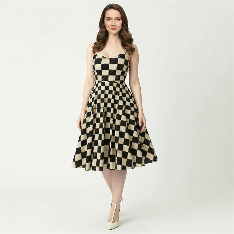Retro Vintage 1950s Hepburn Midi Dress A Line Dress Flare Dress Spaghetti Straps Plaid Fit Flare Fancy Dress Women's Carnival Valentine's Day Casual Homecoming Retro Theme Party Adults' Dress
