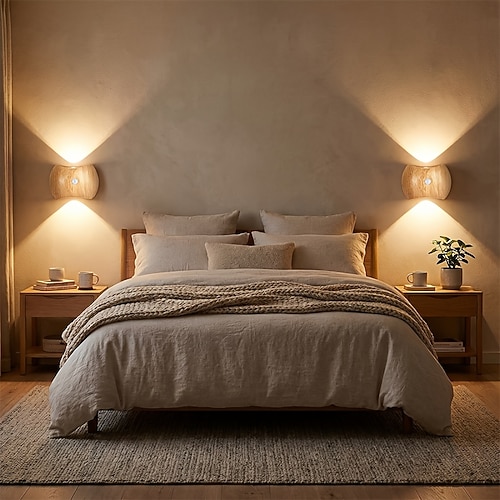 lightinthebox applique da parete in ceramica piccola lampada da parete, lampada da parete rustica in legno di noce, lampada da testiera vintage, apparecchio di illuminazione per interni per camera da