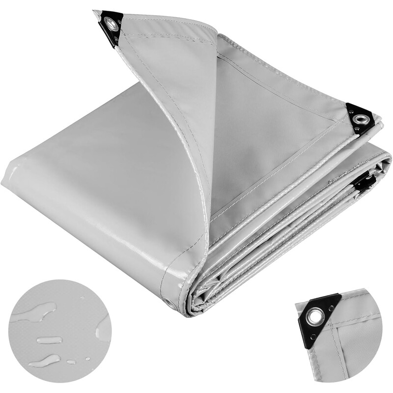 WOLTU Schutzplane mit Ösen, wasserdichte PVC-Plane 500g/m², ultra schwer und beidseitig beschichtet, Aluminium-Abdeckung für Garten, Pool, 3x5m, Hellgrau