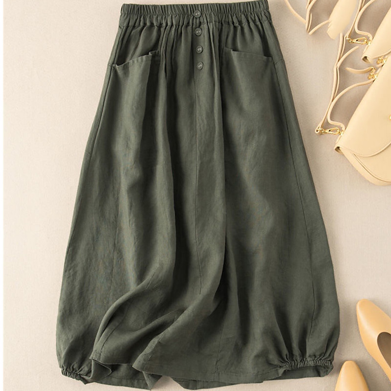 Women's Skirt A Line Basic Casual Midi High Waist Skirts Solid Colored Pocket Casual Daily Weekend Black Army Green Navy Blue Khaki Summer Cotton And Linen