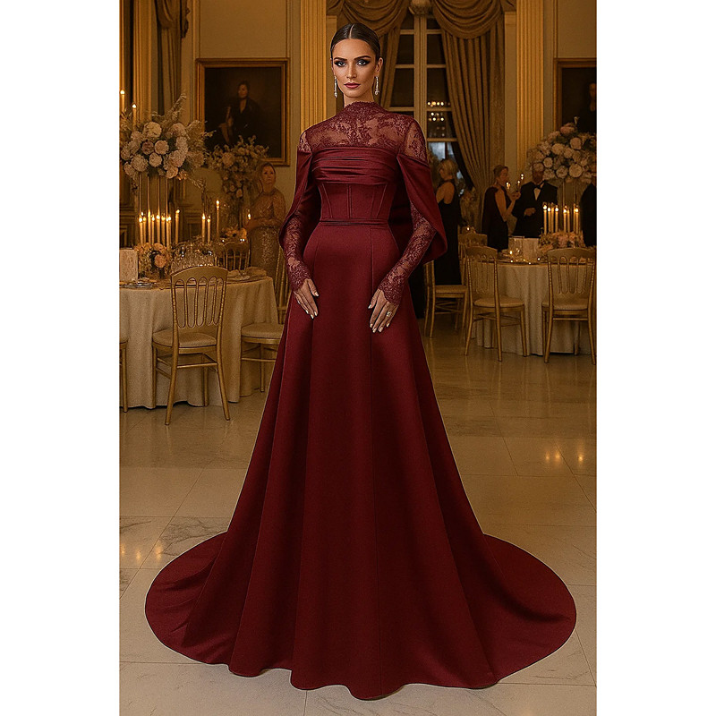 A-Line Floor Length Beaded Eembroidered Formal Dresses Mother of the Bride Dress Evening Gown Ball Gown Formal Dress Elegant Long Sleeve High Neck Wedding Formal Pocket Satin with Pleats Beading