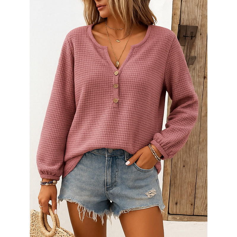 Women's Pullover Sweatshirt Plain Casual Long Sleeve Crew Neck Regular Tops Street Dailywear Buttons Pink Green Dark Blue Coffee Spring Fall Winter