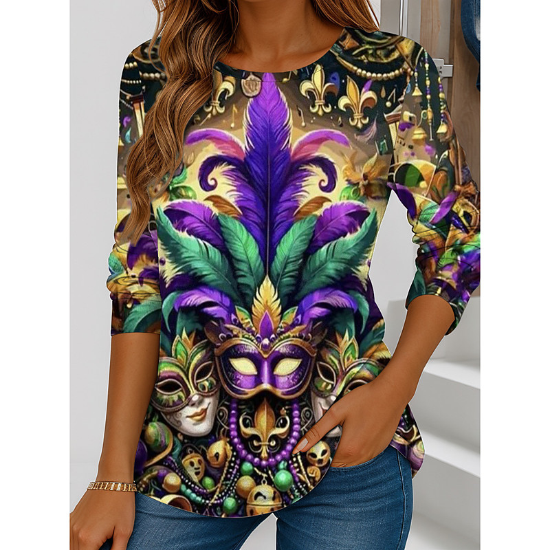Carnival Women's T Shirt Graphic Geometric Vintage Stylish Classic Long Sleeve Crew Neck Regular Tops Daily Weekend Print Yellow Dark Green Purple Spring Fall