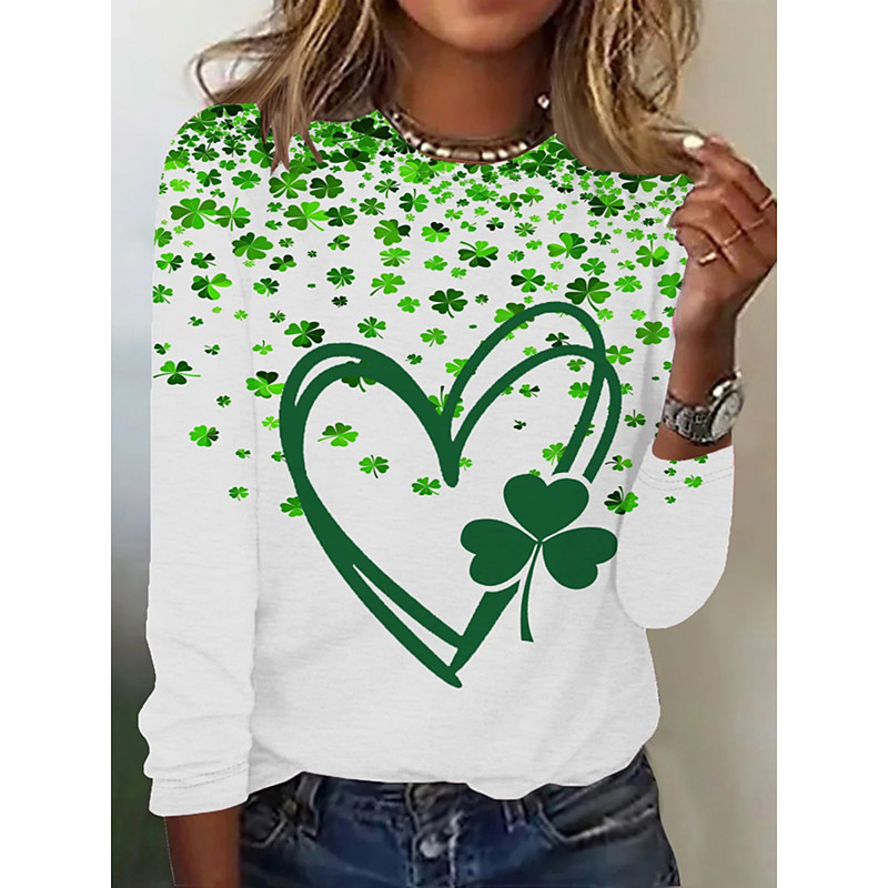 St. Patrick Women's T Shirt Graphic Shamrock Fashion Stylish Classic Long Sleeve Crew Neck Round Neck Regular Tops Daily Weekend Print White Dark Green Green Summer Spring Fall