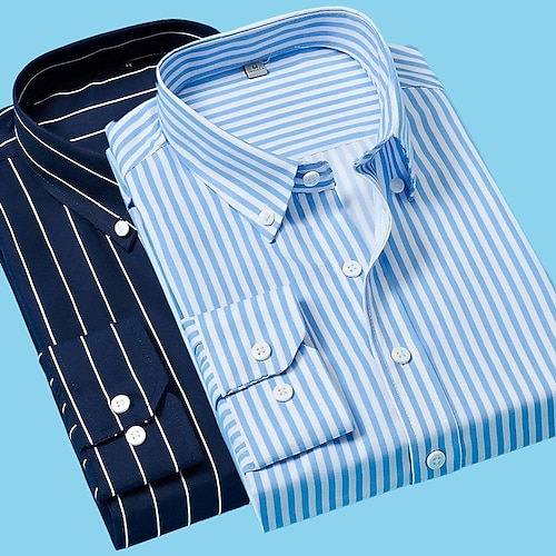Per uomo Camicia Camicia elegante Camicia button-down Camicia a righe Camicia con Colletto Strisce verticali Lavoro Ufficio / Carriera BluBlu chiaro Bianco rosso Blu navy rosso Azzurro chiaro