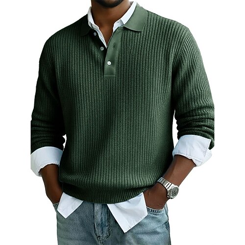 Per uomo Camicia di Velluto a Coste Maglia da golf Lavoro Casuale Bavero Manica Lunga Essenziale Moderno Semplice Bottoni Primavera Autunno Vestibilità regolare Blu Verde scuro Vinaccia Nero Bianco