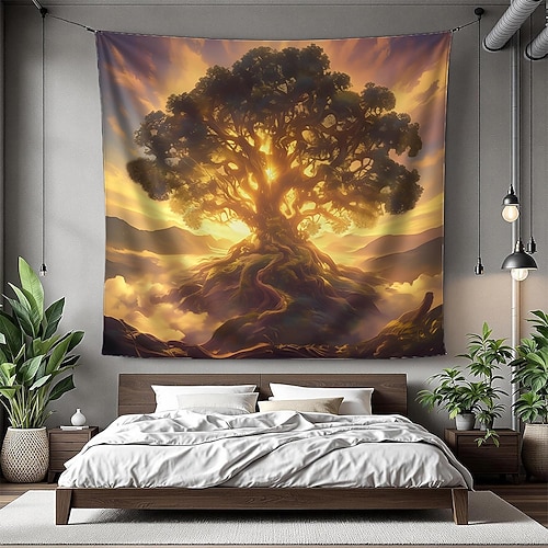 Tapisserie Banner Decke Baum des Lebens Modern 3D Schlafzimmer Wohnzimmer Wohnheim Jugendzimmer Studentenwohnheim Wandveranda Wohndeko