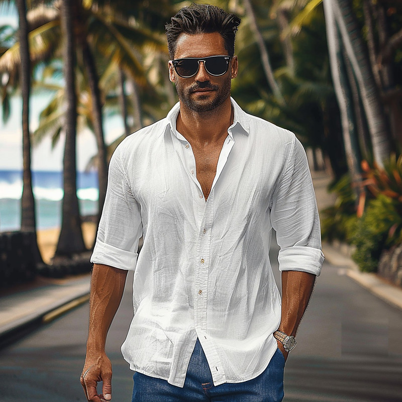 Men's Lightweight Jacket Shirt Jacket Casual Jacket Vacation Daily Breathable Buttons Spring Fall Plain Fashion Classic Lapel Regular Brown Jacket