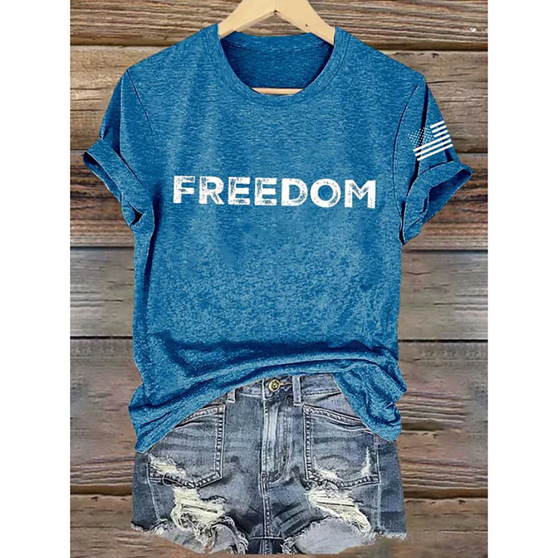 American Independence Day Women's T Shirt Graphic American Flag Vintage Stylish Classic Short Sleeve Crew Neck Round Neck Regular Tops Daily Weekend Print Blue Black White Red Gray Summer Spring