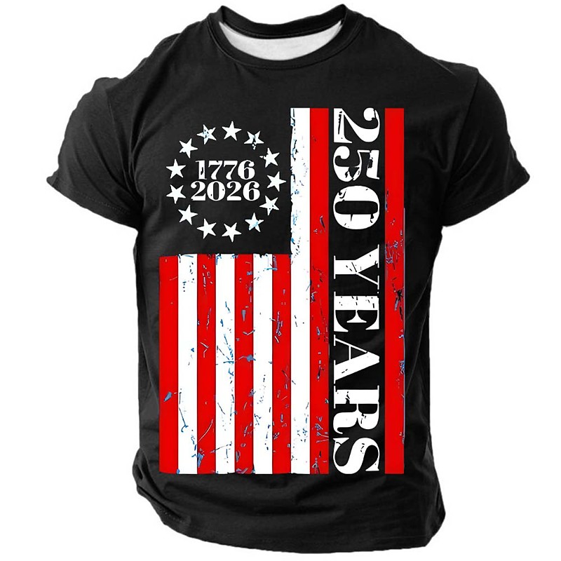 US America 250 Year Anniversary Patriotic T Shirts For Men American US Flag T Shirt Short Sleeve T shirt 3D Print Crew Neck Shirt Fashion Daily Basic Street Casual Daily Black Red Blue Summer
