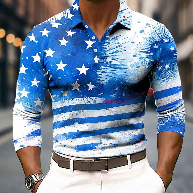 American Independence Day Men's American US Flag Polo Long Sleeve Polo Shirts Collared Shirts Casual Anniversary Daily Wear Festival Wear 3D Print Buttons Spring Fall Winter Blue Blue 1 Blue 3#