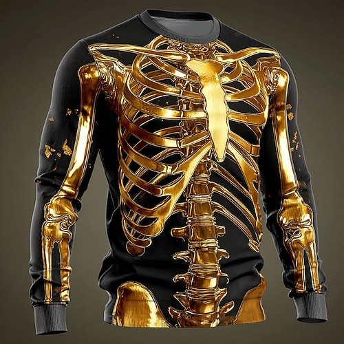 Felpa Costumi Scheletro da Uomo Punk Festa Manica Lunga Collo a Giro Vacanza Rossa Blu Collo Ronde 3D Designer per Tutte le Stagioni