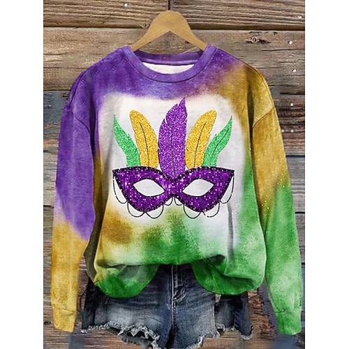 Felpa Pullover da Donna Carnival Maglietta Grafica Astratta Casual Maniche Lunghe Collo Giro Regular Tops Moda Quotidiana Giallo Viola Verde Primavera Inverno