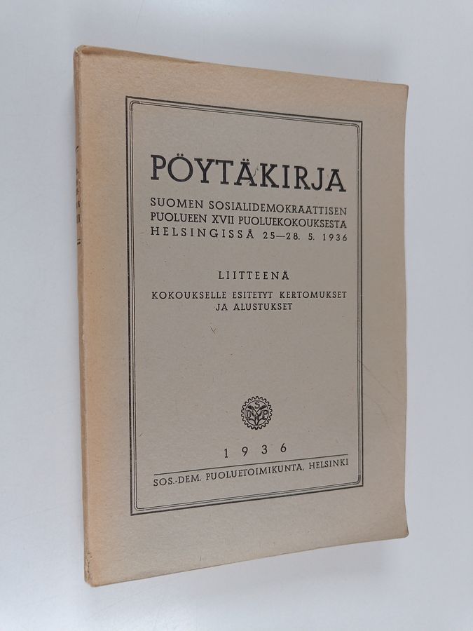 Pöytäkirja Suomen sosialidemokraattisen puolueen XVII puoluekokouksesta, joka pidettiin Helsingin työväenyhdistyksen talossa toukokuun 25-28 ...