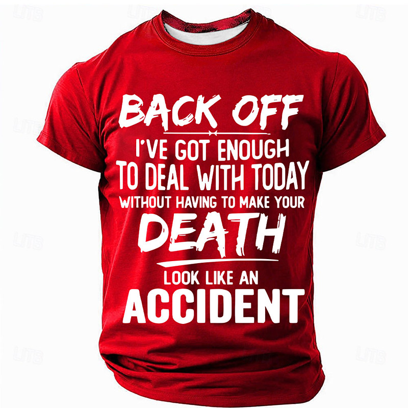 Mens Funny Graphic Short Sleeve T-Shirt: 'Back Off, Don't Make Your Death Look Like An Accident'