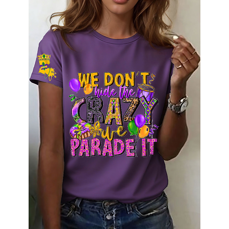 Mardi Gras Women's T Shirt Graphic Letter Vintage Stylish Classic Short Sleeve Crew Neck Regular Tops Daily Weekend Print Black White Purple Summer Spring