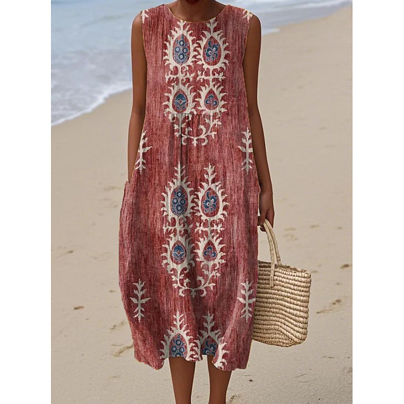 Women's Midi Dress Sundress Shift Dress A Line Dress Vacation Casual Boho Going out Beach Loose Fit Floral Graphic Geometric Sleeveless Crewneck Pink Red Blue Orange Summer Spring