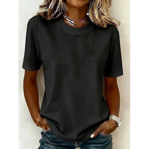 T-Shirt da Donna in 100% Cotone Shirt Tee Top Monocromatica Moda Stilosa Basic Manica Corta Collo Regolare Top Regolari Uscita Giornaliera Weekend Blu Nero Bianco Giallo Verde Chiaro Estate Primavera