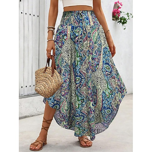 Per donna Gonna da vacanza Elegante Bohemien Moda Casual Maxi Vita media Gonne Grafico Coulisse Elastico in vita Orlo irregolare Micro-elastico Quotidiano Vacanza Blu Nero Bianco Giallo Estate