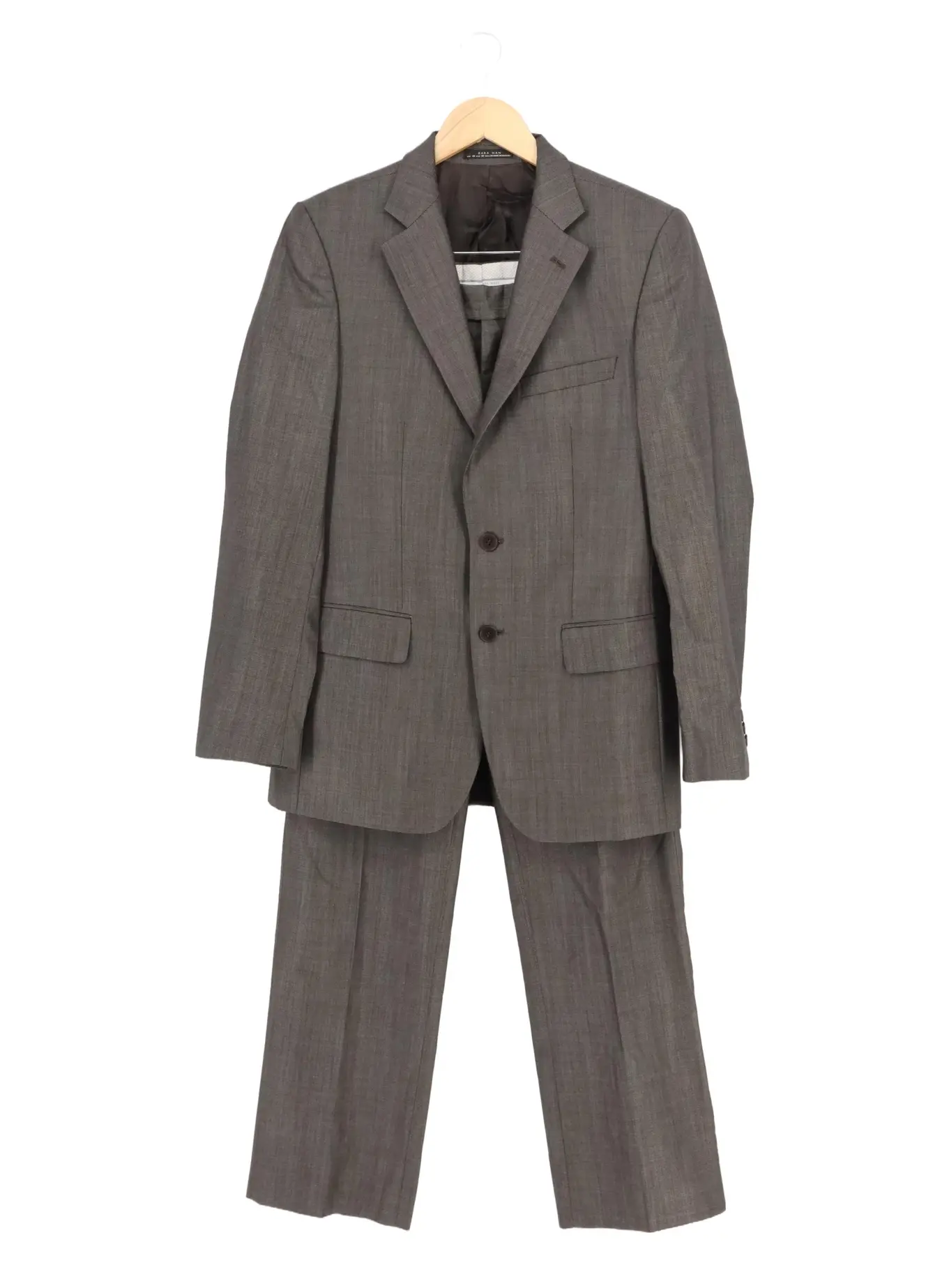 ZARA Herren Anzug Gr. 48 Regular Fit Business Grau Elegant Wolle Seide