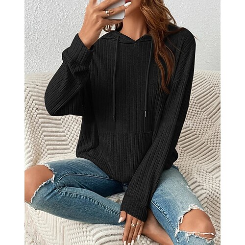 Per donna Felpa con texture Felpa con cappuccio Semplice Streetwear Casual Comodo Manica Lunga Con Cappuccio Top Regolari Streetwear Ferie Uscire Tasca Frontale Nero Beige Grigio Autunno