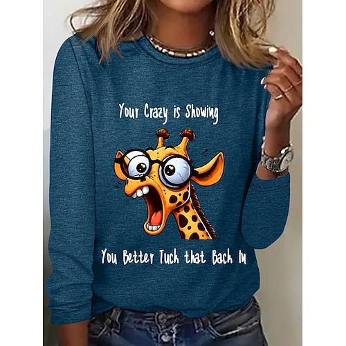 Per donna Maglietta Grafico Animale Giraffa Vintage Moda Elegante Manica Corta Manica Lunga Girocollo Top Regolari Quotidiano Weekend Stampato Blu Nero Bianco Rosa Cachi Estate Primavera Autunno