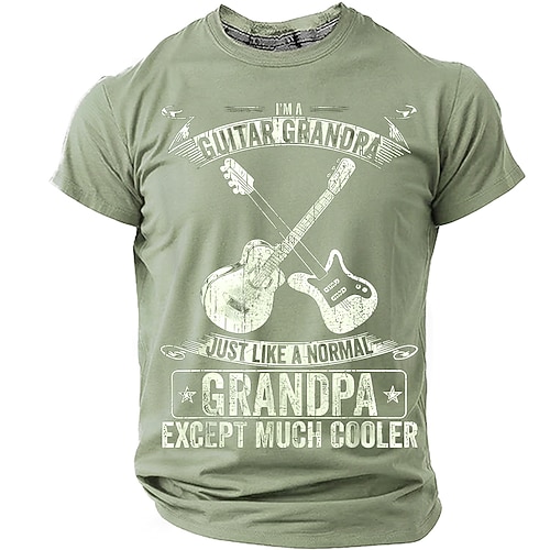 Herren-T-Shirt „Ich bin ein Gitarren-Opa – genau wie ein normaler Opa, nur viel cooler" mit gekreuzten Gitarren im Vintage- und Used-Look. Normale Passform. Vatertagsgeschenk. Designer-Kleidung.