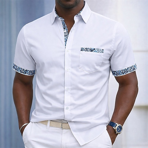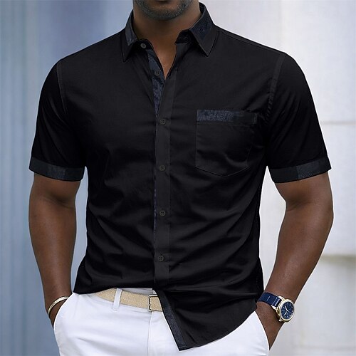 Per uomo Camicia Camicia elegante Camicia con Bottoni Blocco di colori Casuale Quotidiano Nero Bianco Manica Corta Collo ripiegato Estate Tutte le stagioni Abbigliamento Patchwork