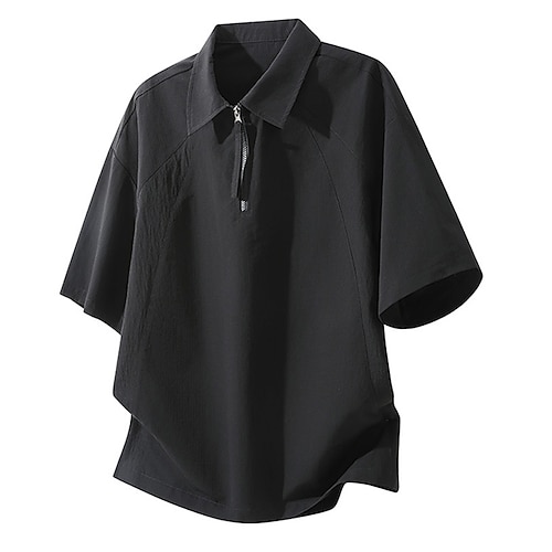 Per uomo Camicie di lino Polo Casuale Vacanza Bavero Manica Corta Moda Essenziale Tinta unica Raffreddamento Zip a un quarto Estate Primavera Rosa chiaro Nero Albicocca Camicie di lino