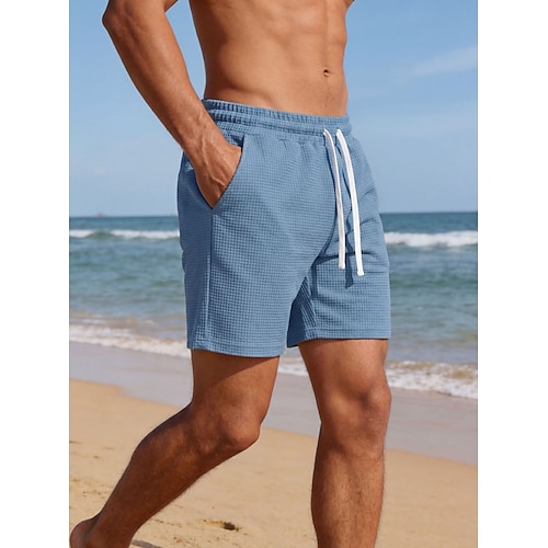 Per uomo Pantaloncini Waffle Shorts Shorts da Spiaggia Pantaloncini casual Tasca Elastico in vita Semplice Comodità Traspirante Lunghezza al ginocchio Casuale All'aperto Spiaggia Vacanza Moda Nero