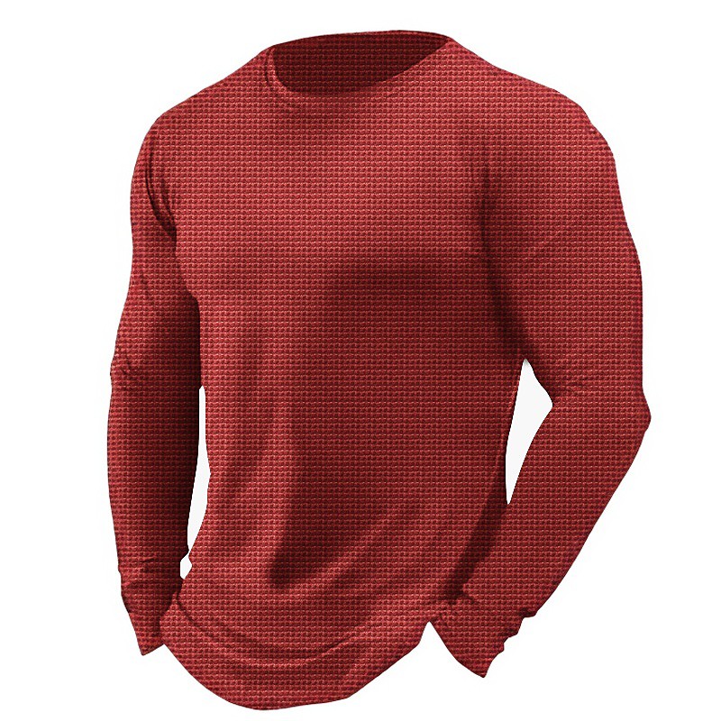 Men's Waffle Shirt Long Sleeve Shirt Long Sleeve Round Neck Fall Winter Plain Plaid / Check Sportswear Casual Leisure Sports Going out Gym Black White Burgundy Top Tee for Men