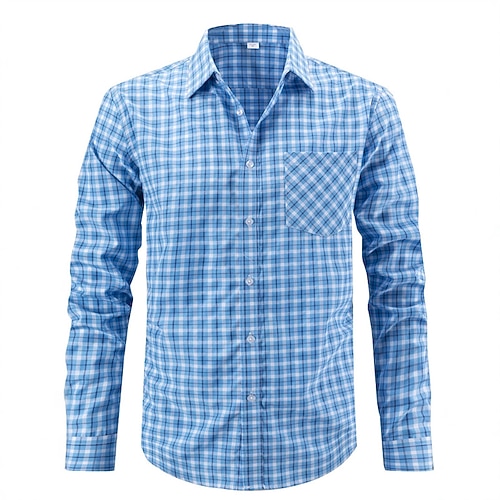 Per uomo Camicia Camicia elegante Camicia con Bottoni Plaid Matrimonio Quotidiano Blu marino Blu Grigio chiaro Manica Lunga Collo ripiegato Primavera Autunno Abbigliamento Tasca Frontale