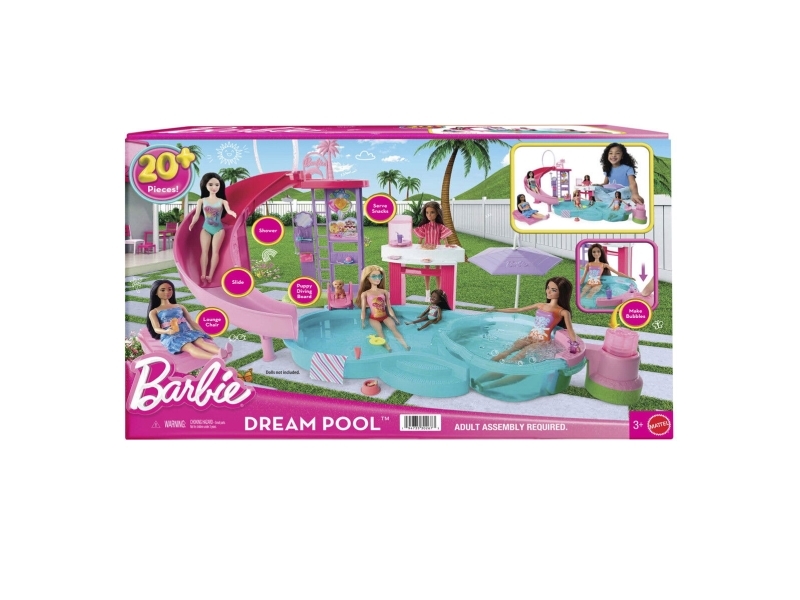 Barbie Dream Pool Playset with Slide & Bubbling Hot Tub, 20+ Accessories Including Pet, Floaties & More, Doll swimming pool, 3 yr(s), 1.8 kg