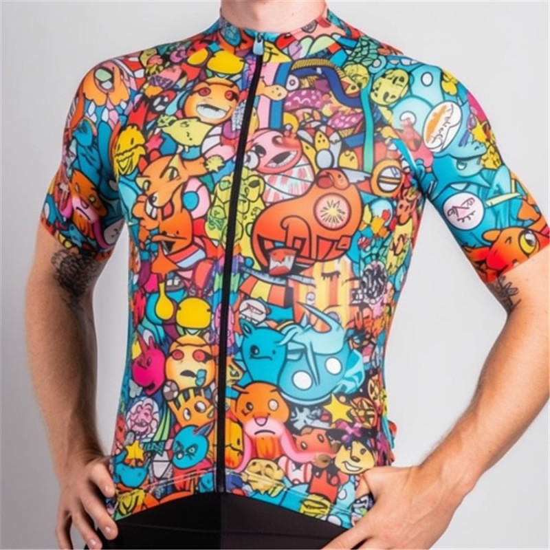 Men's Cycling Jersey Patterned Suit T-Shirt Funny Short Sleeve Bike Jersey Top with 3 Rear Pockets Mountain Bike MTB Road Bike Cycling Quick Dry Front Zipper Back Pocket Moisture Wicking Sports Black