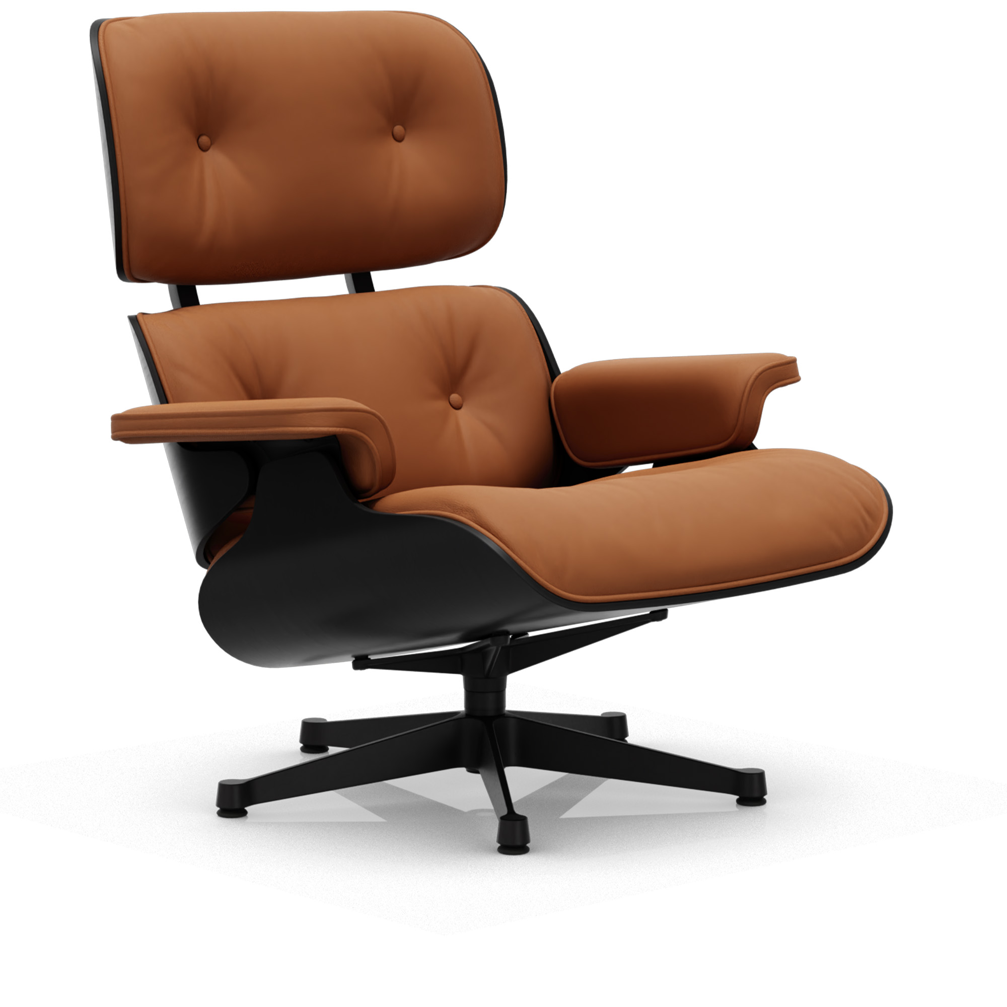 Vitra - Eames Lounge Chair Black Chestnut Leather Premium Cognac 97 Polished Aluminium/Deep Black - Fåtöljer - Charles & Ray Eames - Läder/Metall/Trä