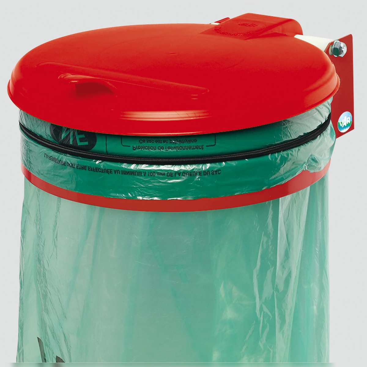 PROREGAL Wandhalterung mit Gummiband | mit Kunststoff-Deckel | BxT 37x46,5cm | Stahl | Rot | Mülleimer Abfalleimer Müllkorb