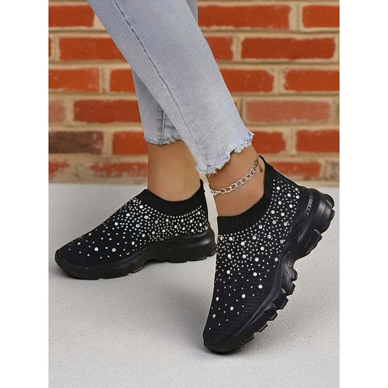 Women's Sneakers Flyknit Shoes Christmas Daily Rhinestone Flat Heel Round Toe Casual Comfort Walking City Running Tissage Volant Loafer Black White Pink