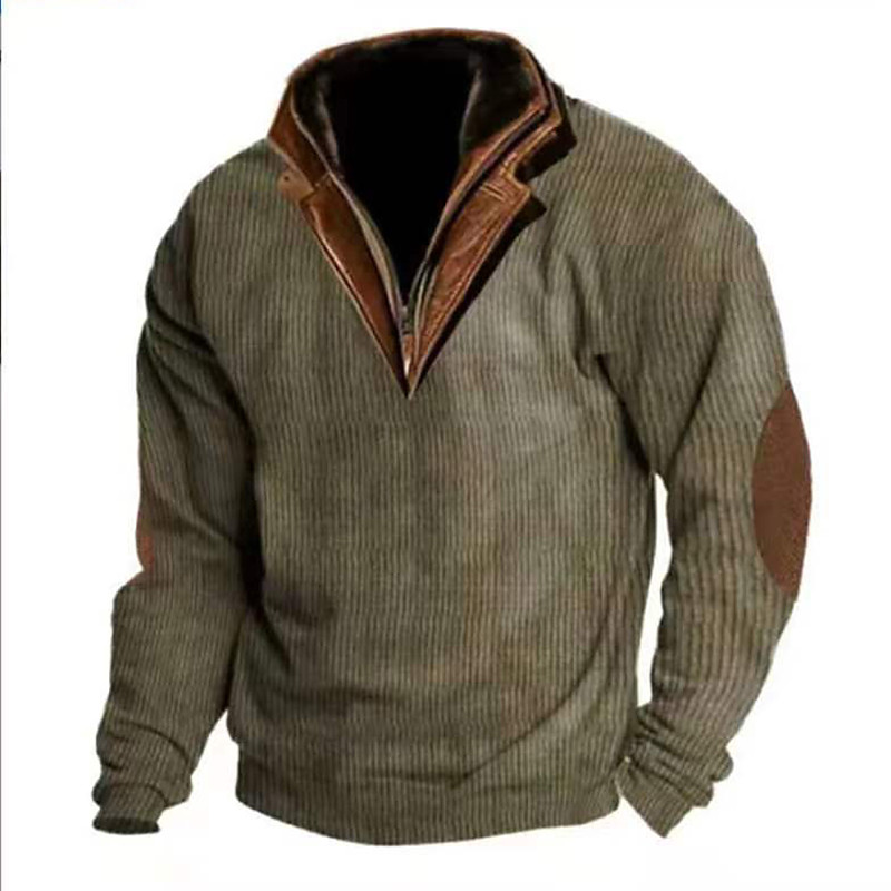 Men's Sweatshirt Waffle Sweatshirt Pullover Quarter Zip Sweatshirt Tactical Light Green Navy Blue Brown Green Khaki Standing Collar Color Block Patchwork Casual Daily Sports Outdoor Vintage