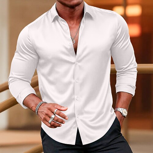 Per uomo Camicia Camicie Camicia con bottoni Liscio Matrimonio Feste Nero Bianco Rosa Vino Manica lunga Bavero Primavera Autunno Abbigliamento