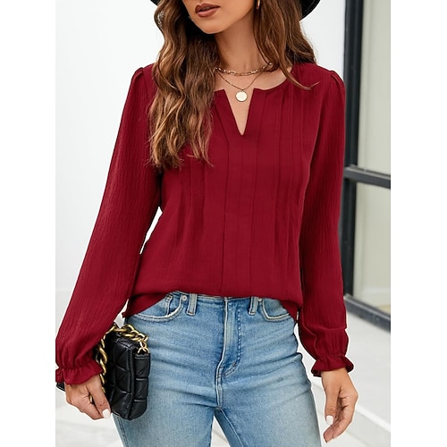 Per donna Blusa Tinta unica Quotidiano Elegante Casual Manica Lunga Scollo a V Top Regolari Quotidiano Arricciato Nero Bianco Rosa Vino Albicocca Primavera Autunno