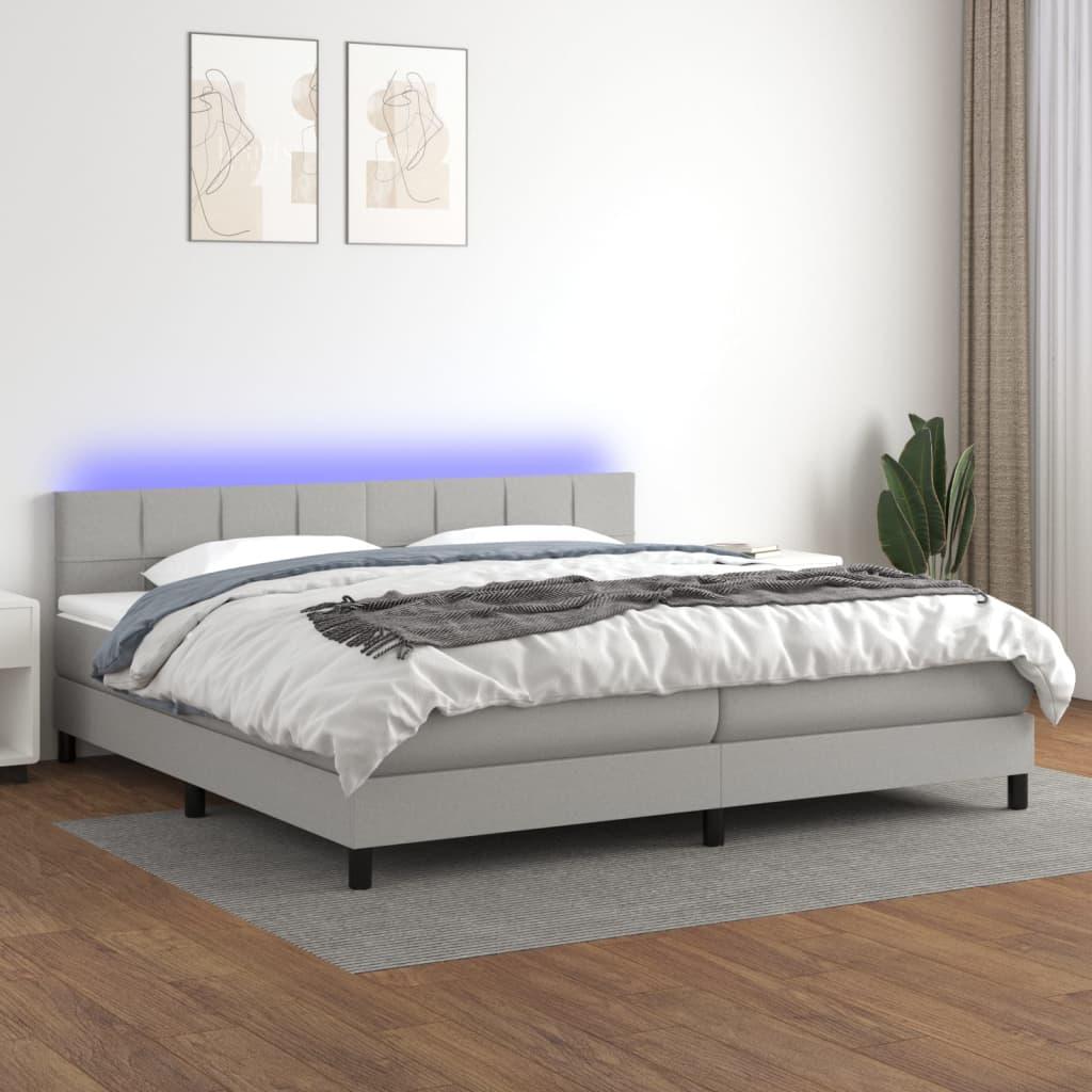 Kontinentalseng med LED-lys 200x200 cm stof lysegrå