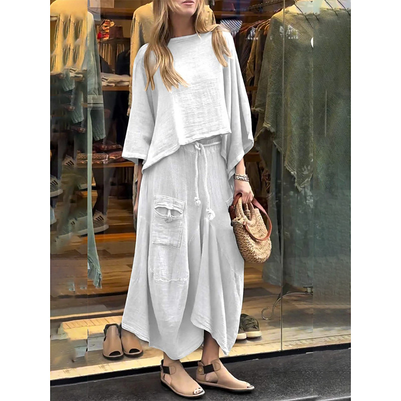 Women's Elegant Fashion Basic Pants Sets Long Sleeve Round Neck Solid Color Outdoor Work Casual Black White Yellow Summer Regular Fit
