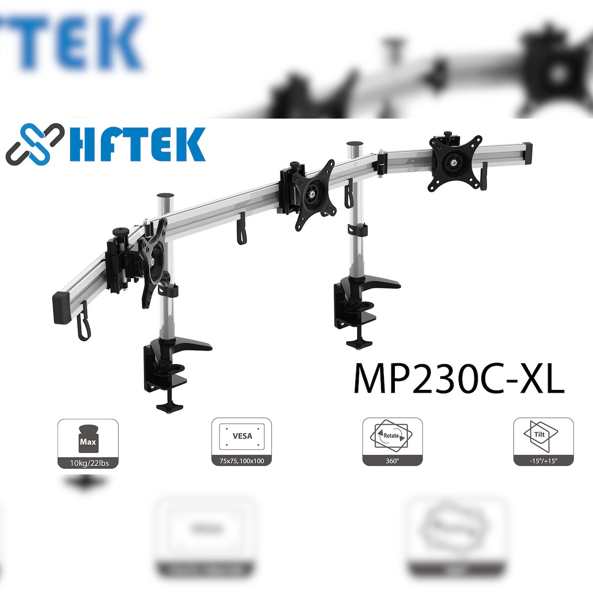 HFTEK® Tischhalterung für 3 Bildschirme von 15 – 34 Zoll mit Tisch-Klemmsystem - VESA-Lochmuster 75/100