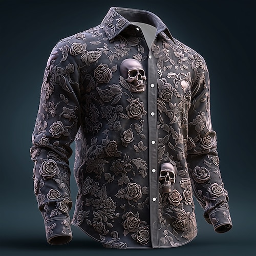 Per uomo Teschio Stampa Floreale Giorno dei Morti Camicia Camicia con Bottoni Manica Lunga Vintage Retrò Stile gotico oscuro All'aperto Ferie Primavera Autunno Collo ripiegato Stampa 3D Camicia tipo