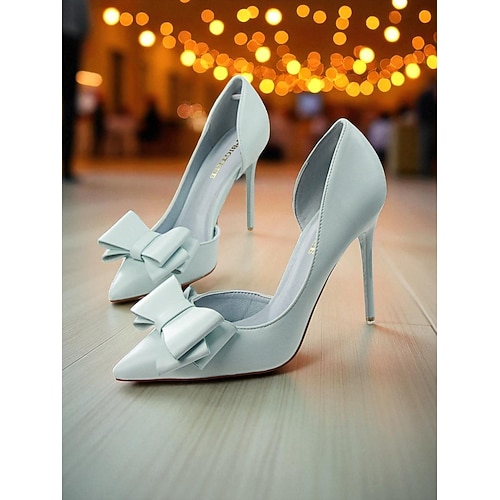 décolleté con tacco alto e fiocco rosso da donna: eleganti scarpe con tacco a spillo per feste di Natale, vita notturna ed eventi festivi