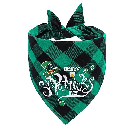 St. Patrick's Day Haustier-Bandana – grün kariertes Design mit dem Aufdruck „Küss mich, ich bin Ire" und Kleeblatthut rote Lippen, maschinenwaschbarer Polyester-Schal für Hunde und Katzen aller