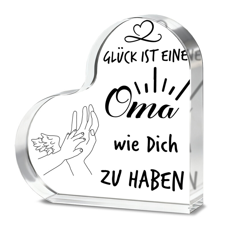 Alphynix 1 Stück deutsche Oma-Herz-Kristall-Anstecktafel, „GLÜCK IST EINE Oma wie Dich ZU HABEN“, Geschenk mit Engelsflügel-Handmotiv, berührende Oma-Geschenkidee zum Geburtstag und zu Weihnachten